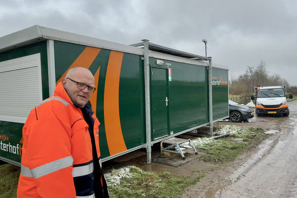 “Even kijken hoe de mobiele badkamer daar die kille oostenwind van afgelopen week heeft doorstaan,” vervolgt hij. En koud is ‘t, de mobiele badkamer heeft daar alleen weinig last van; hij staat in een grote schuur, mooi droog, uit de wind en lekker dichtbij voor de gebruiker. Goed geregeld en precies zoals het hoort. Want bij Verno moet meer kloppen dan alleen het materieel. Proces, mensen, cultuur en mentaliteit zorgen ervoor dat een klant kan blijven doorwerken. Dat betekent: duidelijke planning, goed overleg met collega’s, een sluitend systeem, beschikbaar materieel, transport dat op tijd rijdt en een zorgvuldige retourcontrole zodra iets terugkomt. Juist daardoor kunnen wij zo snel schakelen. Wanneer een klant belt, weten we wat beschikbaar is, waar het staat en wie het kan brengen. Snelle levering en gratis transport zijn geen loze beloftes, maar het resultaat van strakke organisatie en betrokken collega’s.